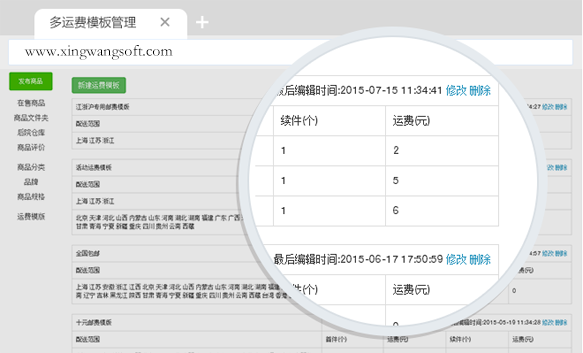 商户可根据地区进行快递费用的分别设置,同时支持多个运费模板的穿件。