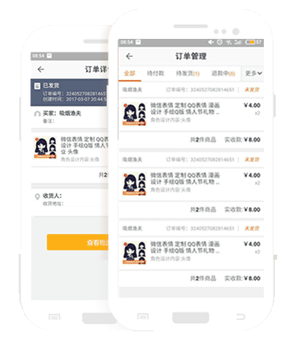 待付款、待发货、退货中,所有订单情况 全部展示。